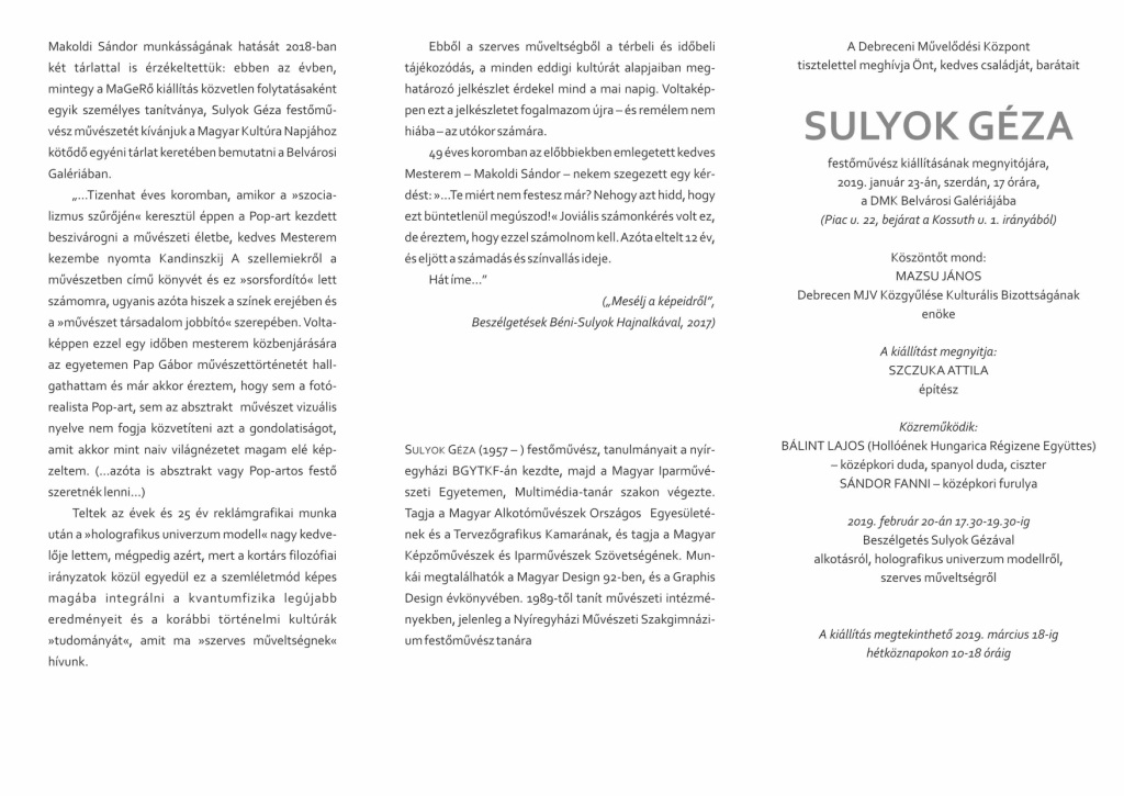 SULYOK GÉZA FESTŐMŰVÉSZ KIÁLLÍTÁSÁNAK MEGNYITÓJA