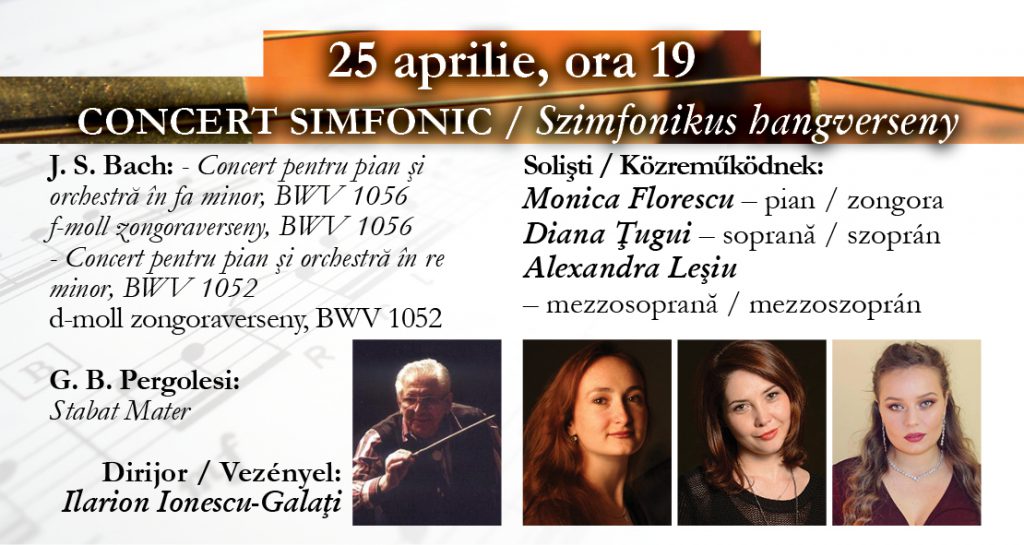Következő koncertünkre három remekművet ajánlunk a nagyérdemű figyelmébe. Az első részben Johann Sebastian Bach (1685?1750) két versenyművét hallgathatják meg. Elsőként elhangzó mű, az f-moll zongoraverseny (BWV 1056) avagy csembalóverseny I. és III. tétele Bach egyik saját, mára elveszett g-moll hegedűversenyének átirata, míg a II. tétel egy oboaversenyből készült. Ez utóbbi részt Bach egyik kantátájának (BWV 156) bevezetőjében is felhasználta. Ezt követően pedig a d-moll zongoraverseny, BWV 1052, Bach egyik saját, mára elveszett d-moll hegedűversenyének átirata fog felcsendülni.