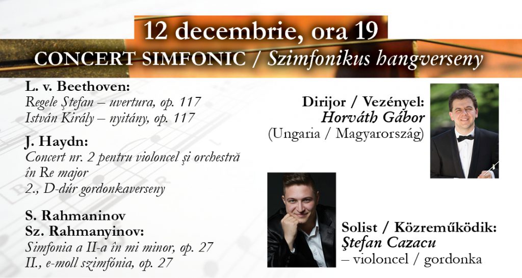 A következő koncertre egy különleges összeállítással készültünk. Az elsőként elhangzó mű Ludwig van Beethoven (1770-1827) István király nyitánya. Ezt követően Joseph Haydn 2., D-dúr gordonkaversenyével folytatjuk koncertünket. A művet Haydn, Antonín Kraft számára komponálta 1783-ban, aki Esterházy Miklós udvari zenekarának csellistája volt. Koncertünk második felében az orosz romantika egyik népszerű alkotása csendül fel, Szergej Rahmanyinov (1873?1943) II., e-moll szimfóniája. Ismert a tény, hogy I szimfóniája Glazunov karmesteri hozzá nem értése miatt csúfosan megbukott, ez pedig a zeneszerzőt évekre visszarettentette a nyilvánosságtól és a komponálástól. 1905 és 1906 nyarán a család ivanovkai rezidenciáján új lendületre kapott és megírta a II., e-moll szimfóniát (op. 27), melyet egykori moszkvai konzervatóriumbeli tanárának, Szergej Tanyejevnek ajánlott. Mivel eleinte elégedetlen volt a művel, még hónapokig csiszolgatta a szólamokat, majd végre 1908 február 8-án maga vezényelte Szentpétervárott az ősbemutatót. A drámai és lírai végletekben bővelkedő nagyszabású mű nagy sikere és a szimfóniáért kiérdemelt Glinka-díj új erőt adott Rahmanyinovnak, hogy saját alkotói tehetségébe vetett bizalma és hite ismét megerősödjön.