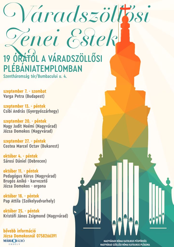 A Nagyváradi Római Katolikus Püspökség és a Váradszöllősi Római Katolikus Plébánia közös szervezésében idén is megrendezik a Váradszöllősi Zenei Estek című programsorozatot. Az est meghívott előadója Kristófi János Zsigmond, Nagyvárad.