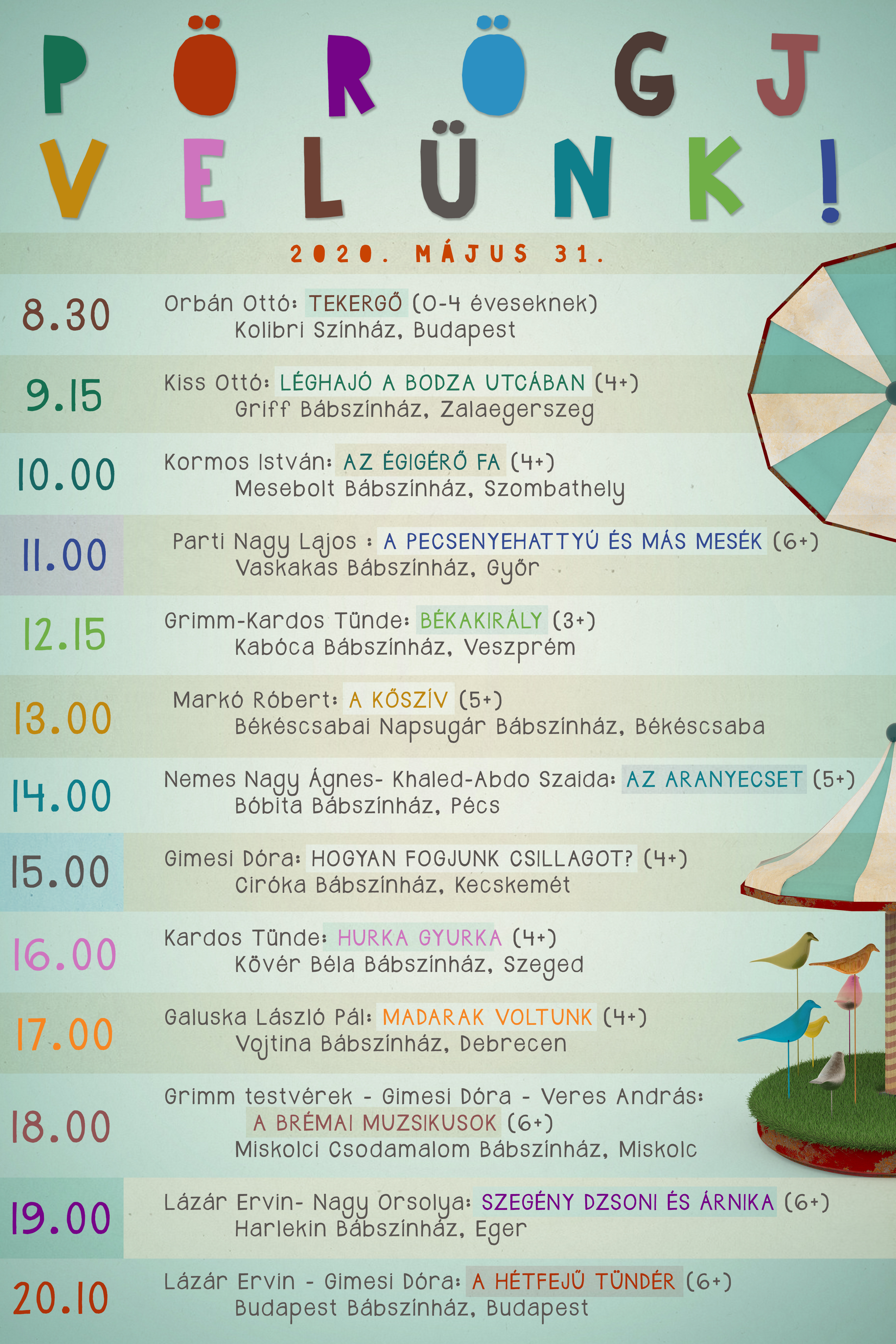 De azokra is gondoltak akik otthon töltenék ezt a napot. Az Ország Bábszínházai összefogtak, és egy közös gyermeknapi ünnepséget találtak ki. Az ország minden bábszínháza bemutatkozik és bemutatja egyik előadását, így 13 bábszínházi előadást nézhetnek meg a gyerekek 8.30-tól 21.00 óráig vasárnap online.
