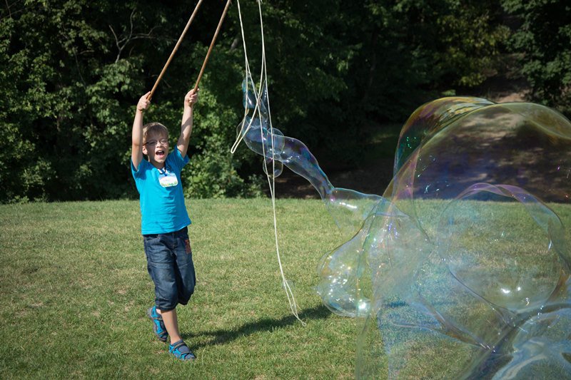 Titkos receptből készülő buborékszörnyetegeket eregethetnek a gyerekek a napsütötte domboldalon.