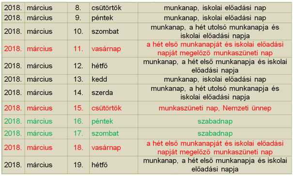 A munkanap áthelyezés miatt március 9-én a munkanapra, március 10-én a péntekre érvényes forgalmi rend szerint közlekednek a vonatok. Március 14-én a pénteki, március 15-én a szombati, március 16-án és 17-én az ünnepnapi, március 18-án a vasárnapi közlekedési rend lesz érvényes a vasúton.