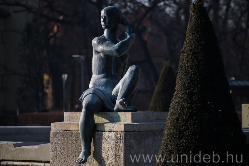 A park végső formáját azonban csak később nyerte el: a 2. világháborút követően szökőkút került a medencébe, amelynek díszítésére évtizedek elteltével a város hat újabb alkotást készíttetett. Az életnagyságúnál jóval nagyobb bronzszobrok napozó, vízzel játszó férfi és női aktokat ábrázolnak. Madarassy Walter: Ágat tartó nő, Várady Sándor: Vízbe nyúló fiú, Varga Imre: Pihenő nő, Ungváry Lajos: Napozó férfi, Radó Károly: Leányakt és Marton László: Ugró férfi című alkotásai 1965-től díszítik a teret.