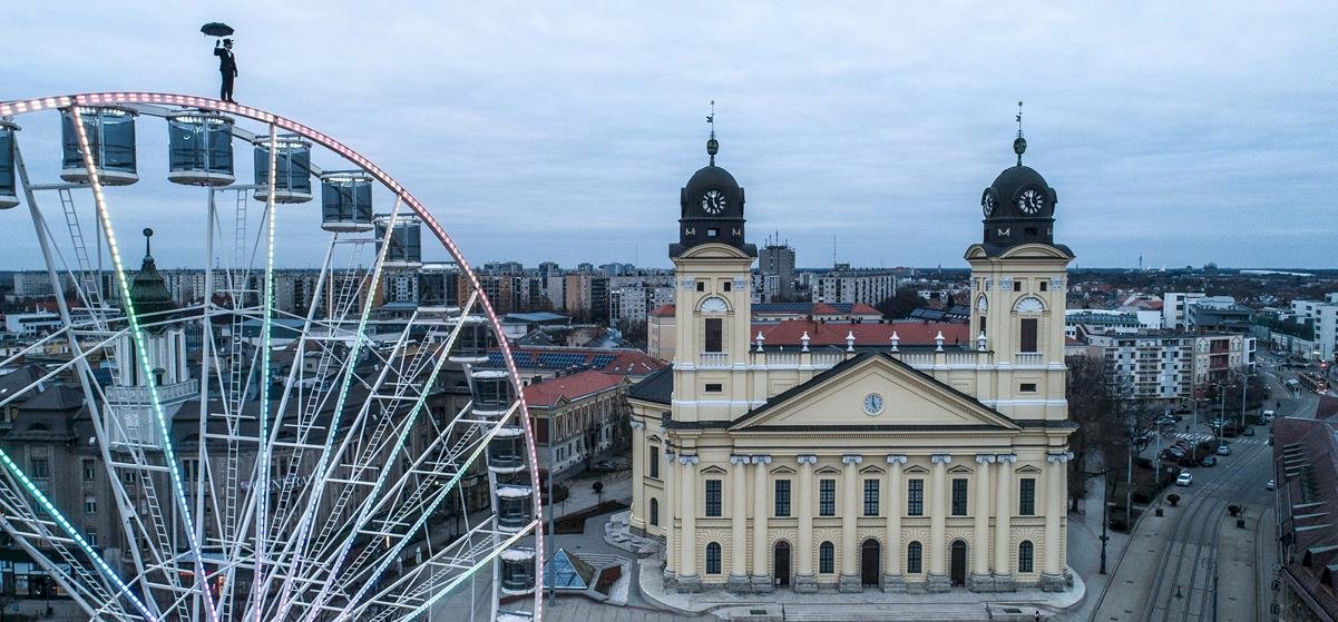 A Balance nevű vizuális projekt részeként Debrecenben is feltűnt az Esernyős ember, aki a Kossuth téren lévő mozgó óriáskerék tetején, 45 méter magasan sétálgatott.