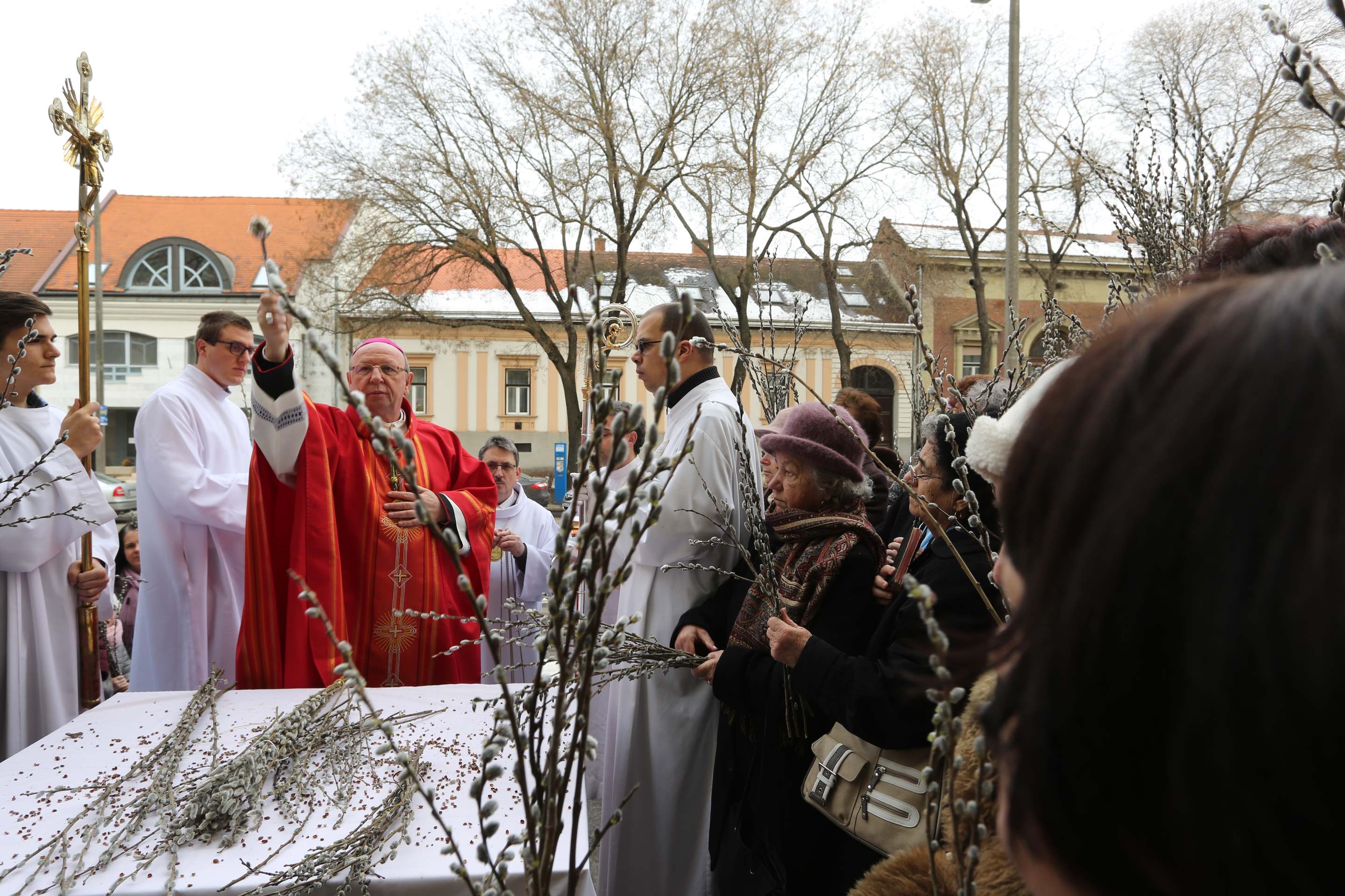 A 10 órakor kezdődő szentmisét Palánki Ferenc debrecen-nyíregyházi megyéspüspök mutatja be. A szentmise előtt a templom bejárata előtt a főpásztor a barkaszentelési szertartást végzi el.