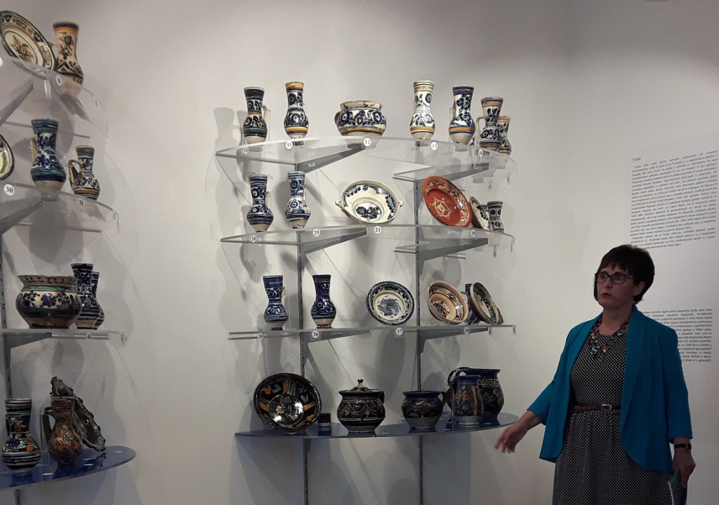 A szakszerű tárlatvezetésre kicsi, de annál érdeklődőbb csapat gyűlt össze. Dr. Magyari Márta nem csak a kerámiákról, a különleges gyűjtemény létrejöttéről, a két erdélyi gyűjtőről mesélt érdekesen, de egy olyan világba is elvitte a jelen lévőket, ahová az átlag tárlatlátogató nem nyer bepillantást. Megismerhettük a tárgyak restaurálásának, rendszerezésének történetét; azt, hogyan született meg a kiállítás immár két városban is hatalmas sikert aratott, különleges arculata; és mi az, amit a Debrecenből Nagyváradra átköltöző tárlathoz a helyi szakemberek hozzátettek.