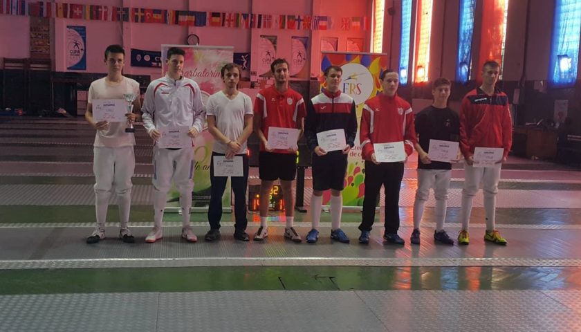 Bíró Dávid (balról a harmadik) remek vívással bronzérmet nyert a 2018-as junior Román kupán.[/caption]