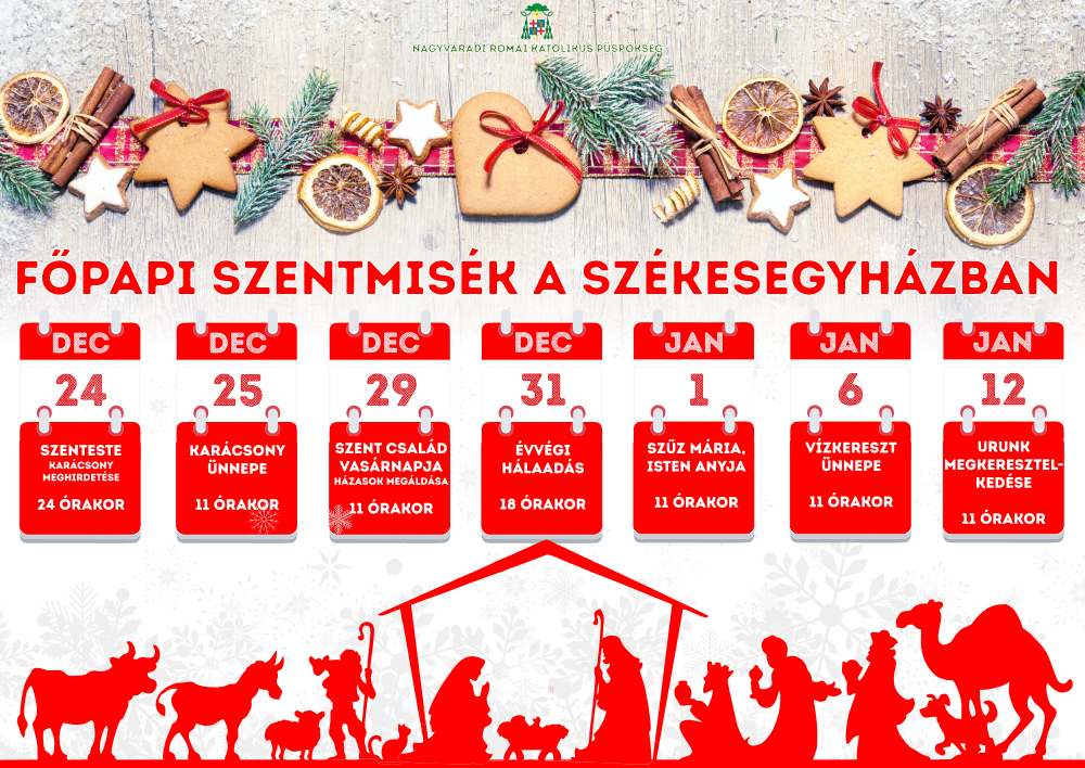 A Nagyváradi Római Katolikus Püspökség karácsonyi és újévi központi programjai, valamint a pontifikális szentmisék rendje a nagyváradi Székesegyházban.