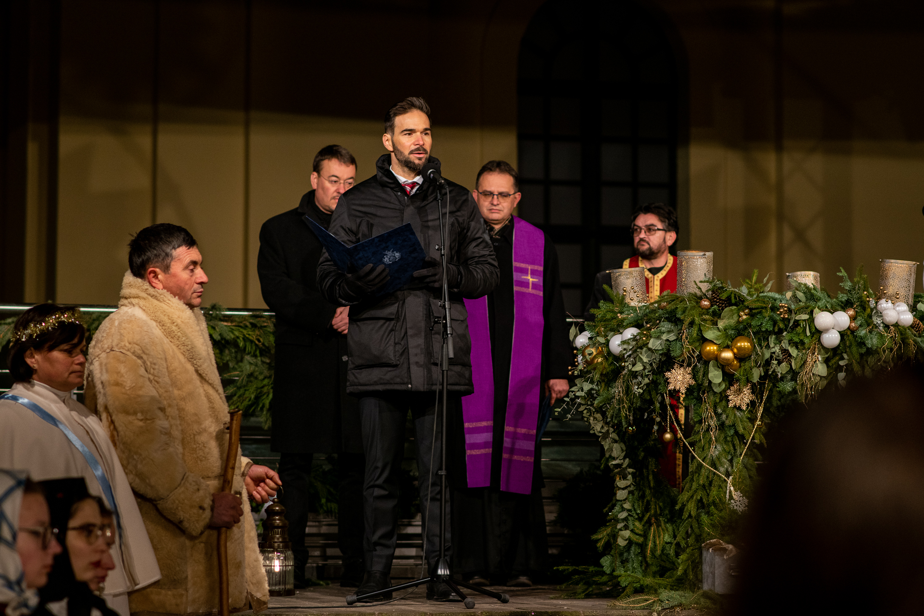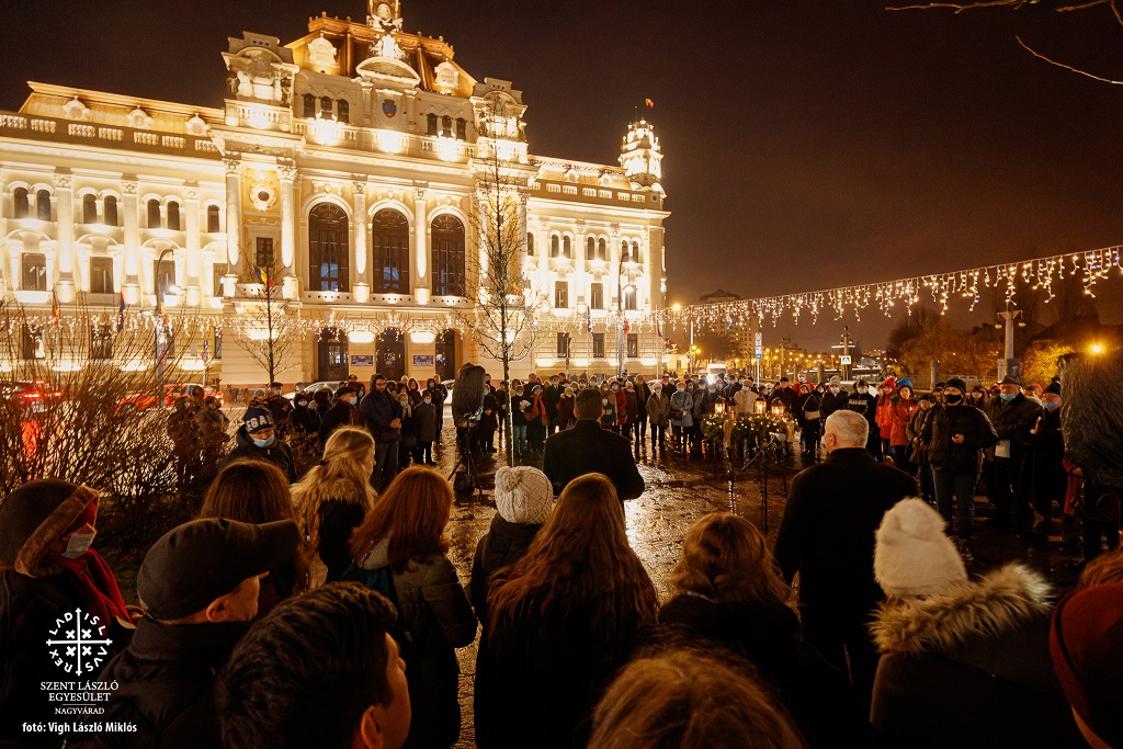 Ismét nagyon sokan mentek el a Szent László Egyesület által a városháza és a Szent László templom ölelésében felállított adventi koszorúhoz. Az aranyvasárnapi gyertya lángra lobbantásán Budai Lajos Dániel, a Nagyvárad-Belvárosi Baptista Gyülekezet lelkipásztora mondott igei alapú beszédet, alkalomhoz illő egyházi énekeket a gyülekezet vegyeskórusa adott elő.