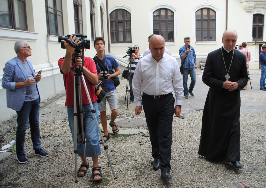 Ile Bolojan, Nagyvárad municípium polgármestere és Virgil Bercea görögkatolikus püspök, a kiégett püspöki palota előtt jelentette be a sajtónak, hogy megállapodtak, az önkormányzat 20 évre használatba veszi az épületet, így elhárul a jogi akadály a rekonstrukció városi költségvetésből történő finanszírozása elől.