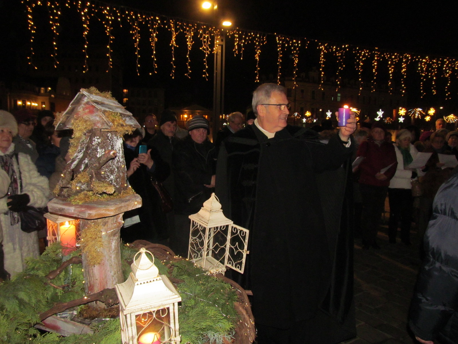 Nagyváradon, advent utolsó vasárnapján Tőkés László lelkipásztor, a Királyhágómelléki Református Egyházkerület előző püspöke, európai parlamenti képviselő gyújtotta meg a szeretet gyertyáját a várakozás koszorúján, a negyedik láng felragyogása már Jézus Krisztus eljövetelének közelségét jelzi a keresztény emberek számára. Ezt megelőzően Moldován Lajos, az Erdélyi Magyar Néppárt városi szervezetének elnöke köszöntötte amegjelenteket a szervező Szent László Egyesület nevében is, pár mondatban összefoglalva az adventi ünnepkör és a gyertyagyújtás szimbolikáját.