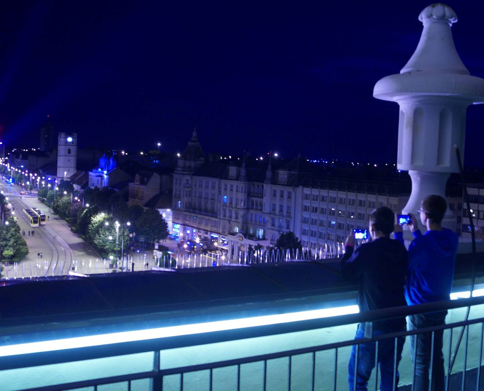Ezen az éjszakán azonban ott találtuk a legnagyobb szenzációt, ahol talán kevesebb volt az előzetes hírverés. A Nagytemplom két tornya között kifeszített panoráma járdáról nem mindennapi látványt nyújtott Debrecen belvárosának esti látképe. Bent a templomban filmvetítés, érempréselés, Kossuth korabeli ruha-próba várta a látogatókat.