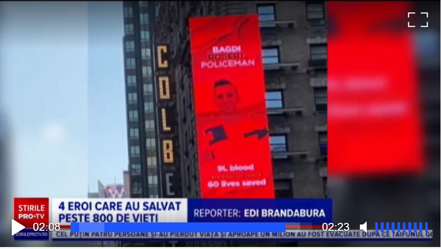 A 23 éves nagyváradi rendőr is azon négy romániai véradó között van, akiknek együtt több mint 850 embert sikerült megmenteniük. Teljesítményüknek köszönhetően, az Untold és a Neversea fesztiválok által szervezett legutóbbi Blood Network elnevezésű véradókampány keretében, fényképük és a róluk szóló információk felkerültek a New York-i Times Square egyik óriáskivetítőjére is.