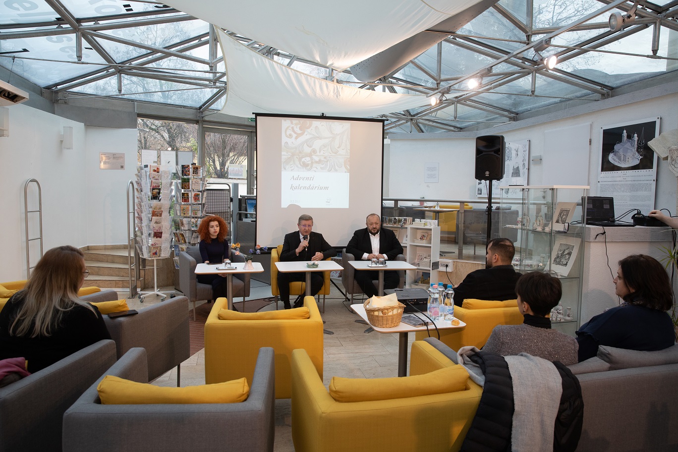 Az adventi kalendáriumot november 25-én sajtótájékoztató keretében mutatta be Dr. Fekete Károly, a Tiszántúli Református Egyházkerület püspöke és Dr. Puskás István alpolgármester a Karakter Kávézóban.