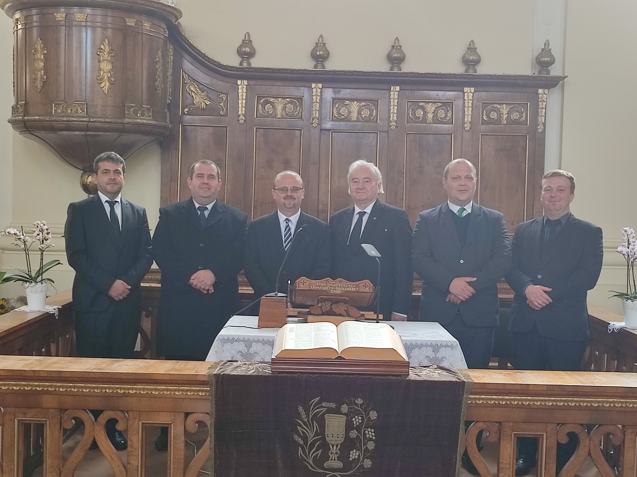 Kiemelt kép: Az egyházkerület új vezetőségének egy része: Bogdán Szabolcs János püspök, Dénes István Lukács főjegyző, Csűry István leköszönő püspök, Rácz Ervin generális direktor, Vékony Zsolt ifjúsági előadó, Módi József katekétikai előadó. Fotó: facebook.com/istvan.csury