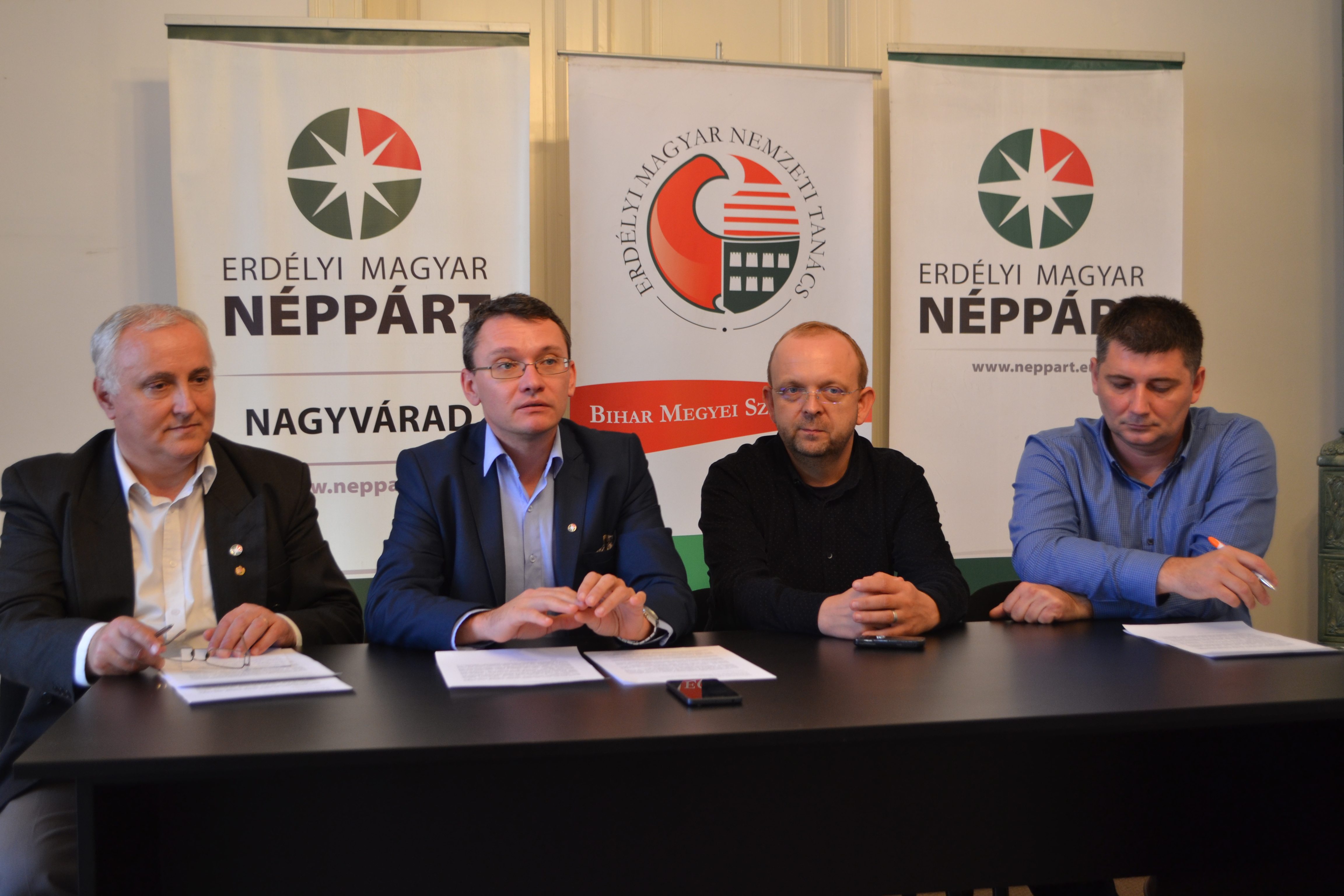 A Szent László-szobor és a nagyváradi városnap időpontjának megváltoztatása ügyében sajtótájékoztatót tartott Nagyváradon Csomortányi István, az Erdélyi Magyar Néppárt Bihar megyei elnöke, Moldován Gellért Lajos, a Néppárt nagyváradi szervezetének elnöke, Habinyák István, a Néppárt nagyváradi szervezetének elnökségi tagja és Nagy József Barna, az Erdélyi Magyar Nemzeti Tanács országos alelnöke.