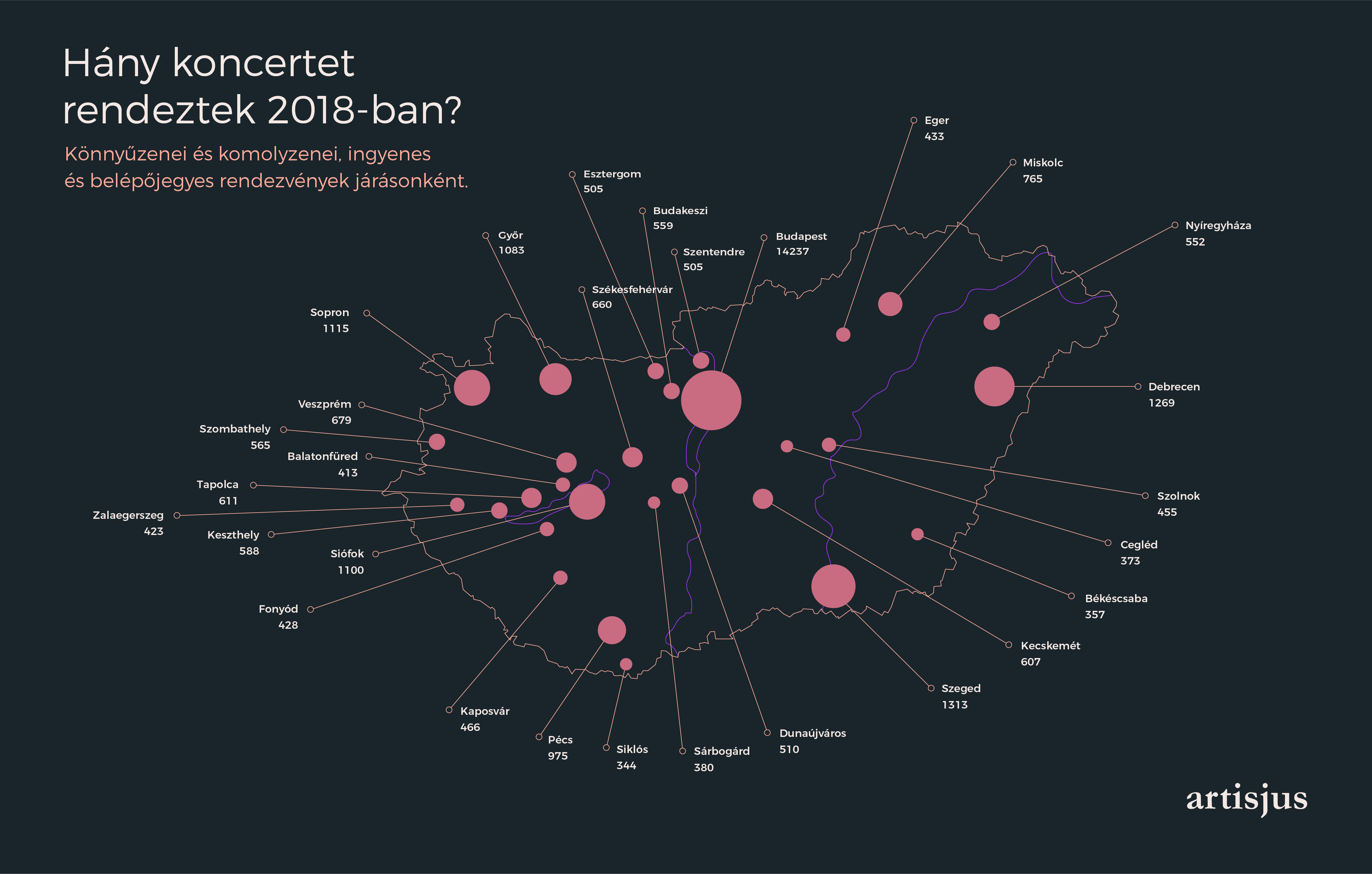 Mint írták, évek óta egyre több koncertet szerveznek Magyarországon. Az Artisjus 2016-ban 18 656, 2017-ben 20 007, 2018-ban pedig 22 050 koncert adatait dolgozta fel, vagyis a szám évről évre emelkedik. Az összesítésben a falunapi fellépésektől a legnagyobb fesztiválokig, az ingyenes programoktól a belépődíjas zenei rendezvényekig minden szerepel.