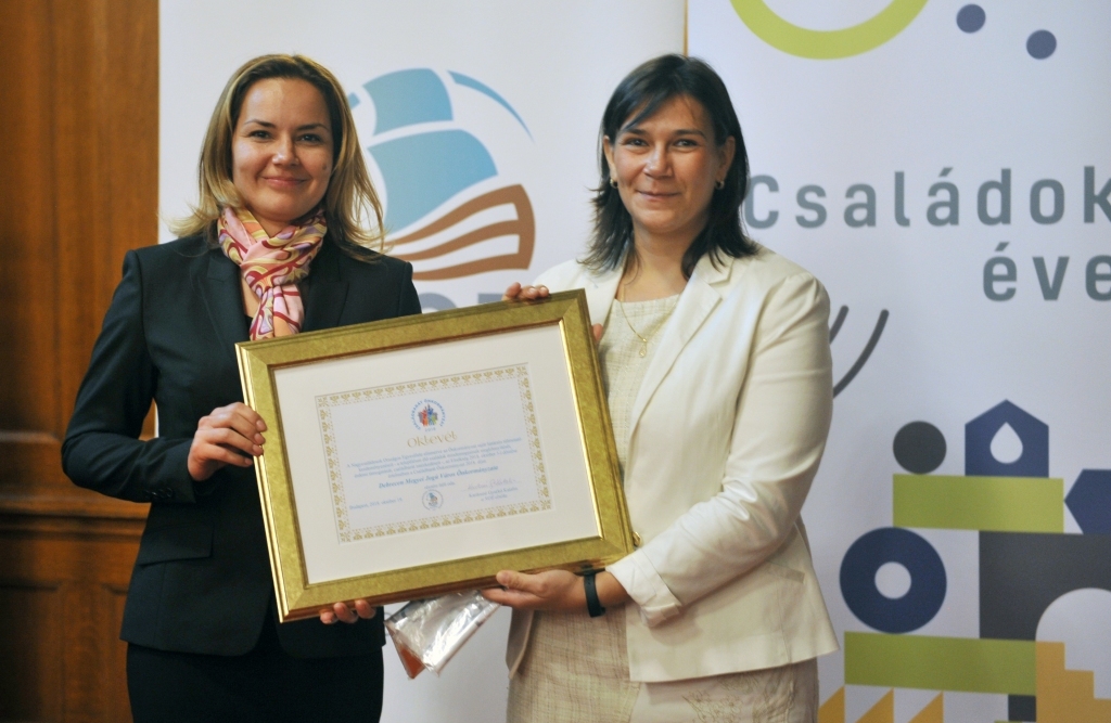 - Debrecenben több mint 70 ezer fiatal él és tanul. Azt szeretnénk, ha ők is a városban találnának munkát és alapítanának családot, ezért fejlesztjük családbarát módon Debrecent. A Nagycsaládosok Országos Egyesülete ezt a törekvésünket díjazta, ezért lett Debrecen családbarát város ? fogalmazott Széles Diána alpolgármester.