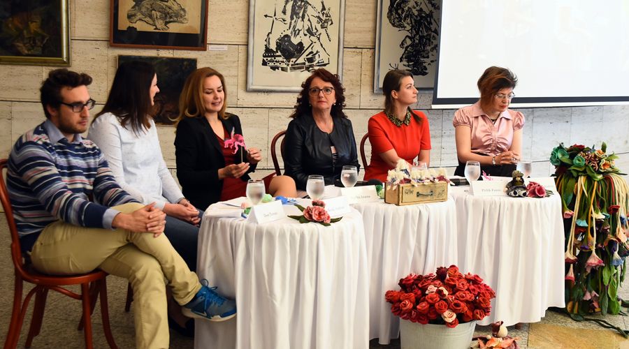 Kép: A sajtóeseményen részt vett Széles Diána, Debrecen alpolgármestere, Bódor Edit,a Főnix Rendezvényszervező Nonprofit Kft. ügyvezető igazgatója, Berki Andrea, a Déri Múzeum igazgatóhelyettese, Mátrai-Nagy Andrea, a Debreceni Művelődési Központ Tímárház igazgatója, Pitlik Fanni, a Nagyerdei Kultúrpark Kft. zoopedagógusa és Dom Tamás, a MODEM Modern és Kortárs Művészeti Központ kurátora. Fotó: Máthé András