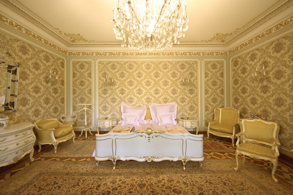 Nicolae és Elena Ceauşescu hitvesi ágya a bukaresti családi palotában. Bánhegyesy Antal fotója.[/caption]