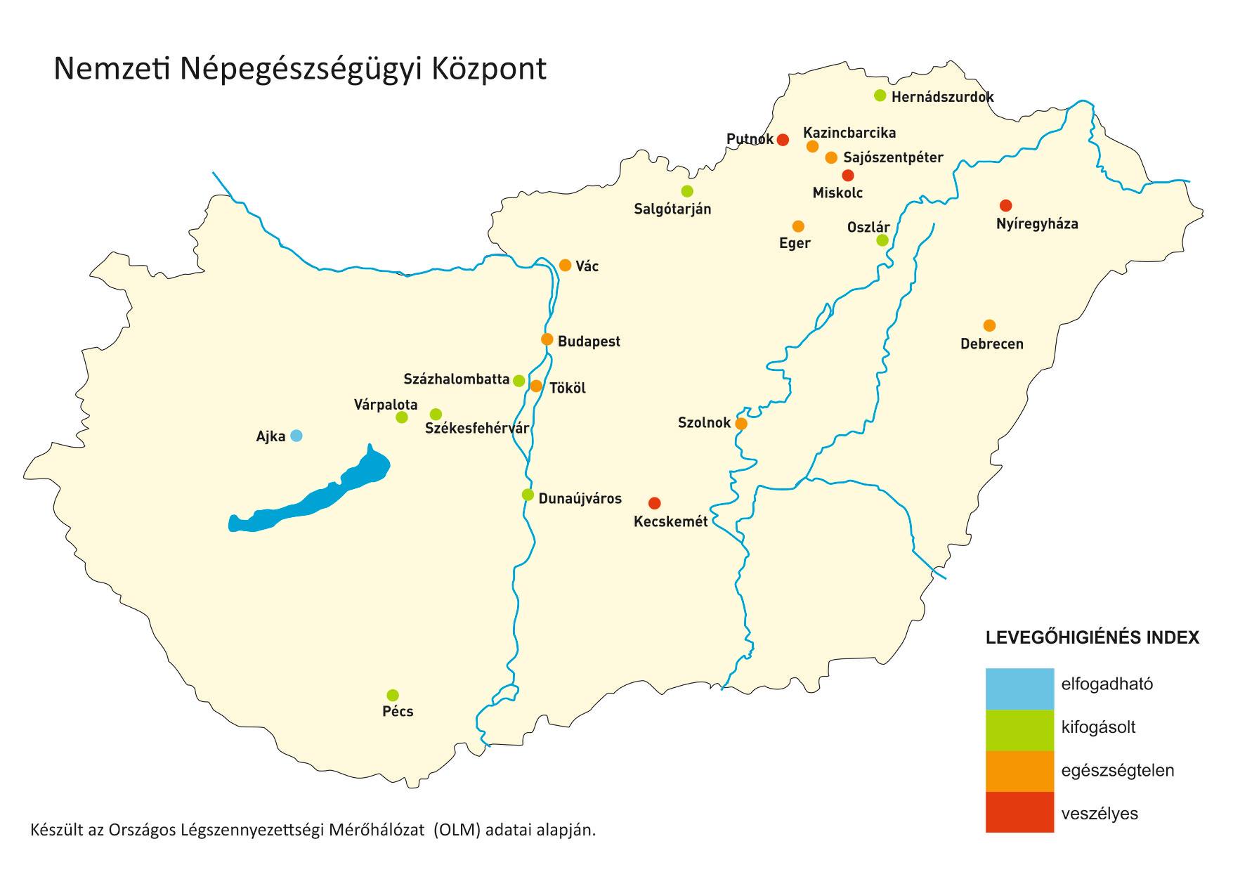 Kecskeméten, Miskolcon, Nyíregyházán és Putnokon veszélyesnek minősítették a levegőt. Nyolc településen - Budapesten, Debrecenben, Egerben, Kazincbarcikán, Sajószentpéteren, Szolnokon, Tökölön és Vácon - egészségtelen a levegőminőség. További nyolc településen - Dunaújváros, Hernádszurdok, Oszlár, Pécs, Salgótarján, Százhalombatta, Székesfehérvár, Várpalota - kifogásolt a levegő.