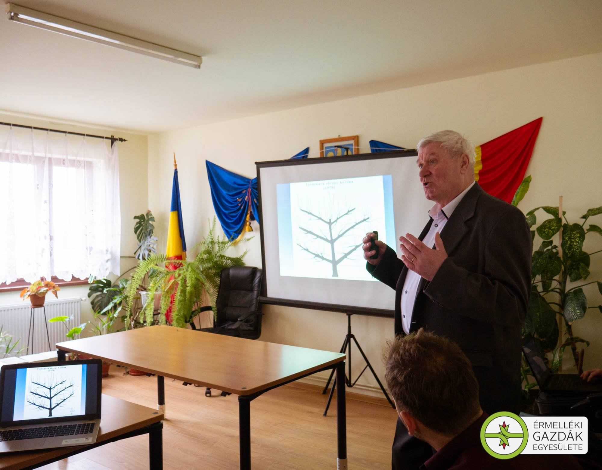A fenti előadásokkal párhuzamosan a szentjobbi polgármesteri hivatal üléstermében dr. Gonda István a Debreceni Egyetem, Mezőgazdaság-Élelmiszertudományi és Környezetgazdálkodási Karának oktatója ?A gyümölcstermesztés művelési rendszerei és perspektívái" címmel többek között a metszés témakörét érintve tartott fontos előadást az érdeklődő gazdák számára. Őt követően ?Az időjárási károk ellenei védekezés lehetőségei a gyümölcstermesztésben" címmel dr. Apáti Ferenc kertészmérnök osztotta meg szerteágazó gyakorlati tapasztalatait a témában.
