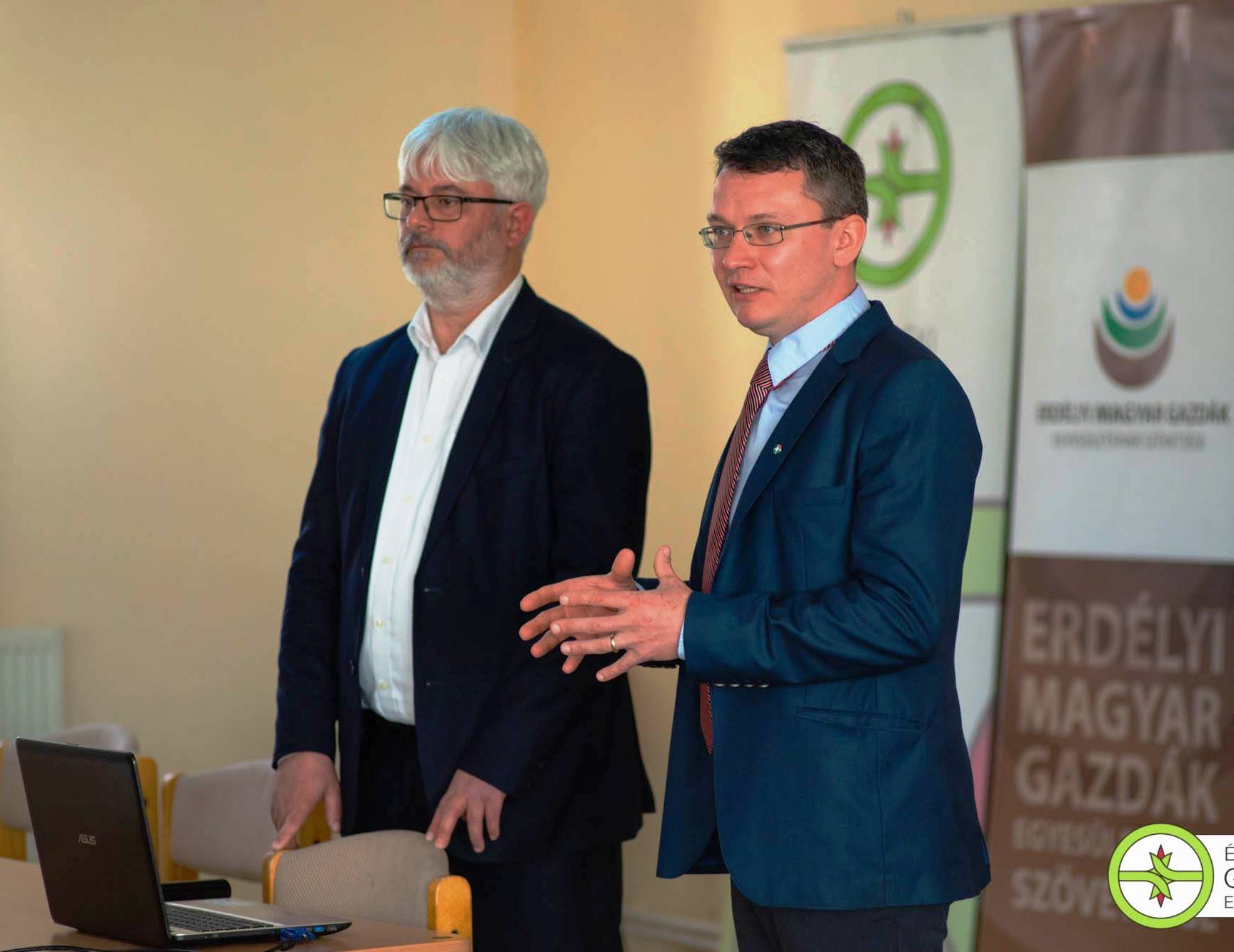 Novac Ciprian, a Mezőgazdasági Kifizetési és Intervenciós Ügynökség (APIA) képviseletében a gazdák számára kiemelkedő fontosságú területalapú és jószág után járó mezőgazdasági támogatásokat ismertette 2019-es évre vonatkozóan. Őt követte Kun Attila pályázatíró, aki a mezőgazdasági finanszírozás egy másik fontos ágazatát, a pályázati lehetőségeket ismertette, különös tekintettel a családi gazdaságok lehetőségeire. Az előadó részletesen kitért a témában elérhető, sokszor szerteágazó, de a laikusok számára gyakran elérhetetlen, és követhetetlen információkra.