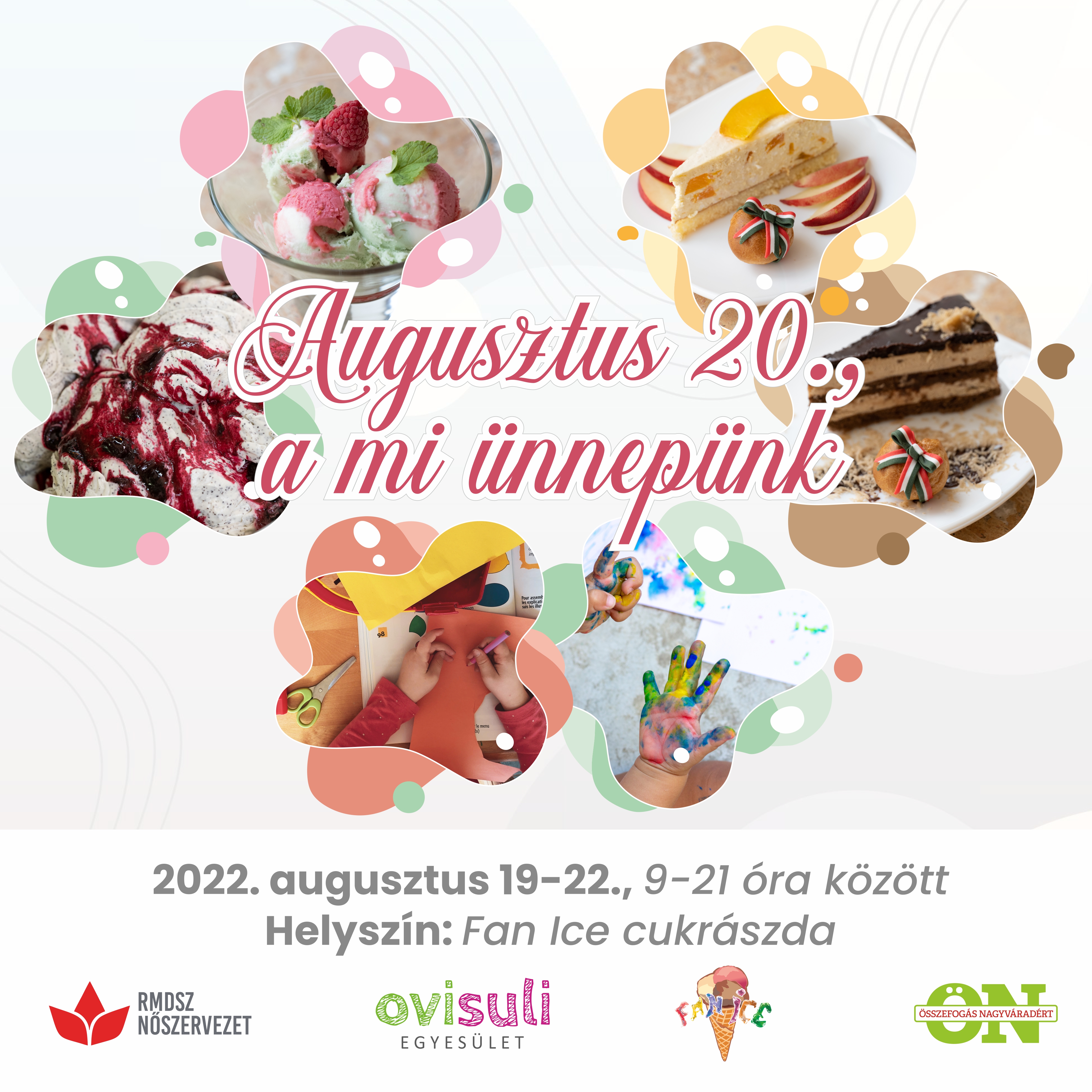 Az augusztus 20-i nemzeti ünnep alkalmából az Ovisuli Egyesület, a Fan Ice cukrászda, a Bihar megyei RMDSZ Nőszervezet és az Összefogás Nagyváradért Egyesület újra bemutatja Nagyvárad ünnepi süteményeit és ezúttal is ajándékkal kedveskednek.