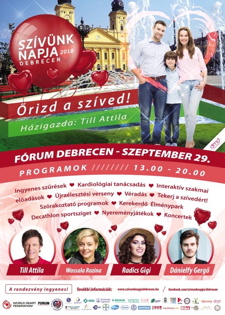 A szervezők a gyerekekre is gondoltak, a Kerekerdő Élménypark a Fórumba hozza a közismert mesék szereplőit, ugyanakkor a Teddy Maci Kórház orvostanhallgatói pedig eléjük varázsolják az elsősegélynyújtás világát. Aki a sportot kedveli, azok kipróbálhatják magukat a Decathlon szigetén. Aki pedig kerékpárra szeretne pattanni, az megteheti az első métereket a szíve egészsége érdekében. A rendezvény házigazdája a TV2-ből jól ismert Till Attila lesz. Ugyanakkor az érdeklődők találkozhatnak Dánelfy Gergővel Debrecen ifjú énekes titánjával, Wossala Rozinával gasztrovilág egyéniségével, valamint Radics Gigivel, akinek előadásában többek között felcsendül a Szív dala.