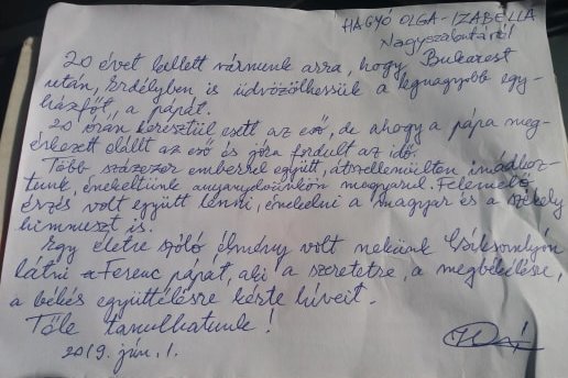 Hagyó Olga, nagyszalontai zarándokunk papírra vetette a mai eseményekkel kapcsolatos gondolatait.[/caption]
