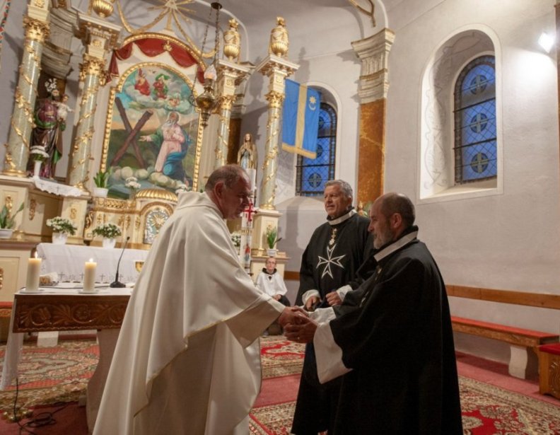 Ünnepi szentmise részeként adták át a magyarországi zarándokok a székelyeknek a Somogyváron őrzött Szent László-ereklyét péntek este, Szentegyházán. A lovagkirály földi maradványát a Máltai Lovagrend tagjai, Puskás Zoltán és Dénes Mihály vették át, akik Csíksomlyóra vitték, hogy a pápa is megérinthesse. (Fotók: Haáz Sándor)[/caption]