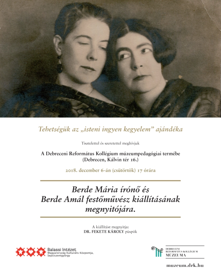 Méltatlanul elfeledett, mellőzött író-festő testvérpárnak állít méltó emléket a debreceni Református Kollégium Nagykönyvtára. Berde Mária (1889-1949) író és Dóczyné Berde Amál (1886-1976) festőművész műveiből nyílik a két művész életművét bemutató kiállítás.