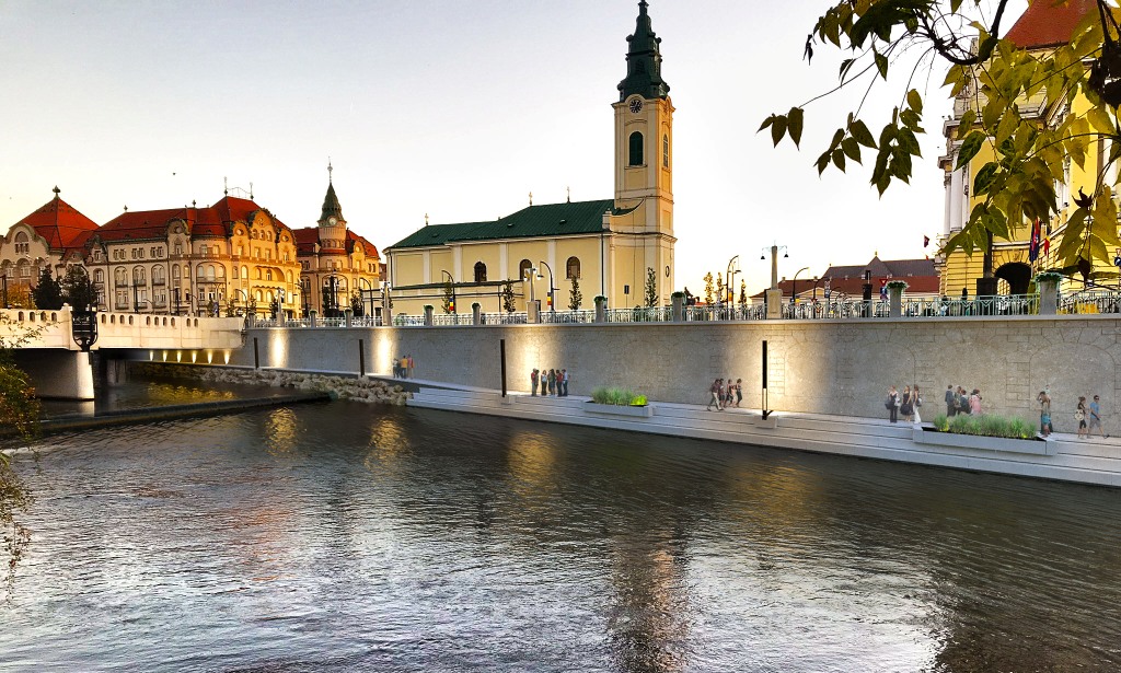 Tegnap már elkezdődött a munka a Sebes Körös bal partján, tájékoztatta a sajtót Mircea Mălan alpolgármester. A centenáriumi híd felől indulva leaszfaltozzák a sétányt, ugyanakkor a Városháza előtti részen, a vízszinttől kezdődően, lerakják a gránitlap burkolatot, majd a munka a díszkivilágítás és a Vágó-féle díszkorlát szerelésével folytatódik. A térrendezés során 50 platánfát ültetnek, zöldterületeket létesítenek, virágtartókat helyeznek el, és a betonfalakat repkénnyel futtatják be.