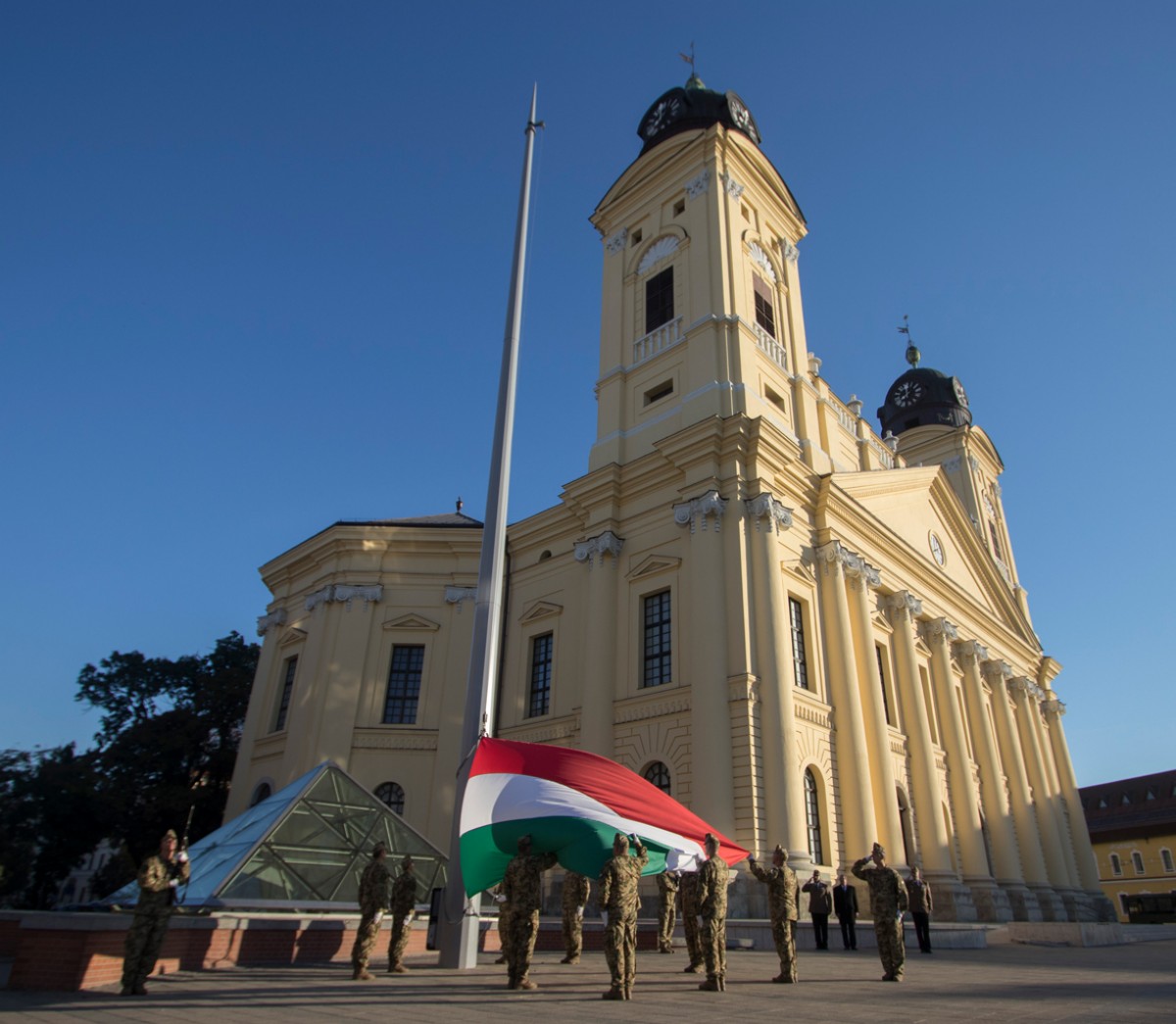 A megemlékezés a Kossuth téren Magyarország lobogójának katonai tiszteletadással történő felvonásával majd félárbocra eresztésével kezdődött. Az eseményen jelen volt Ruszin Romulusz dandártábornok, a Magyar Honvédség 5. Bocskai István Lövészdandárjának parancsnoka is.