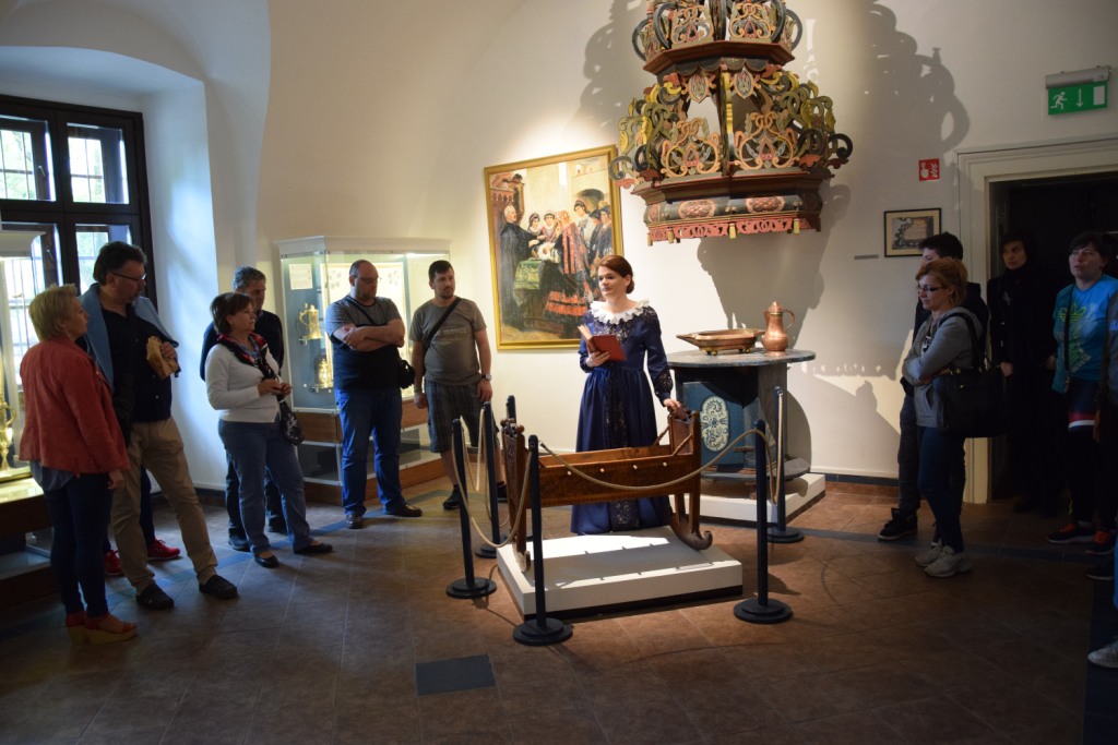 Az egyházművészeti kiállításban Árva Bethlen Kata kalauzolta az érdeklődőket, akinek emlékiratából vett gondolataival, kegyességének megnyilvánulási formáival ismerkedhettek meg. Úrasztali ?cápás? poharát és a Nagytemplomnak ajándékozott ?recehímzéses? terítőjét a múzeumi program új megvilágításban kínálta fel a látogatóknak, mert nemcsak az istenhit különleges tárgyaiként mutatta be azokat, hanem készítésük módját elképzelhetővé és kipróbálhatóvá is tette. A 18. századi Erdélyben tevékenykedő Bethlen Kata élettapasztalata, istenhite a jelenkori embernek is támaszt nyújthat. ?Kétszer jutottam özvegységre, gyermekeimet vagy vallásom miatt vették el tőlem vagy Isten szólította őket korán magához, szenvedtem hitemért és betegségtől is sokáig, ám annál erősebben kapaszkodtam Krisztus keresztjébe.? ? hallhatták a látogatók az élő interpretáció zárómondatát.