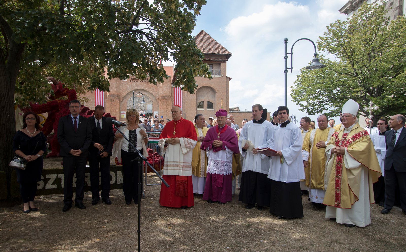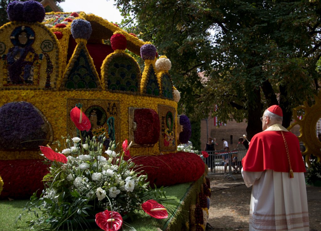 A Főpásztori szentmise után a Bazilika elé vonultak a hívek, ahol a űdebreceni virágkocsikat állították ki. Az ünnepi eseményen Romanek Etelka esztergomi polgármester és Komolay Szabolcs Debrecen alpolgármestere ünnepi beszédét követően Erdő Péter bíboros, prímás megáldotta a Debreceni Virágkarnevál Szent koronát ábrázoló virágkocsit és a "Napba öltözött asszonyt".