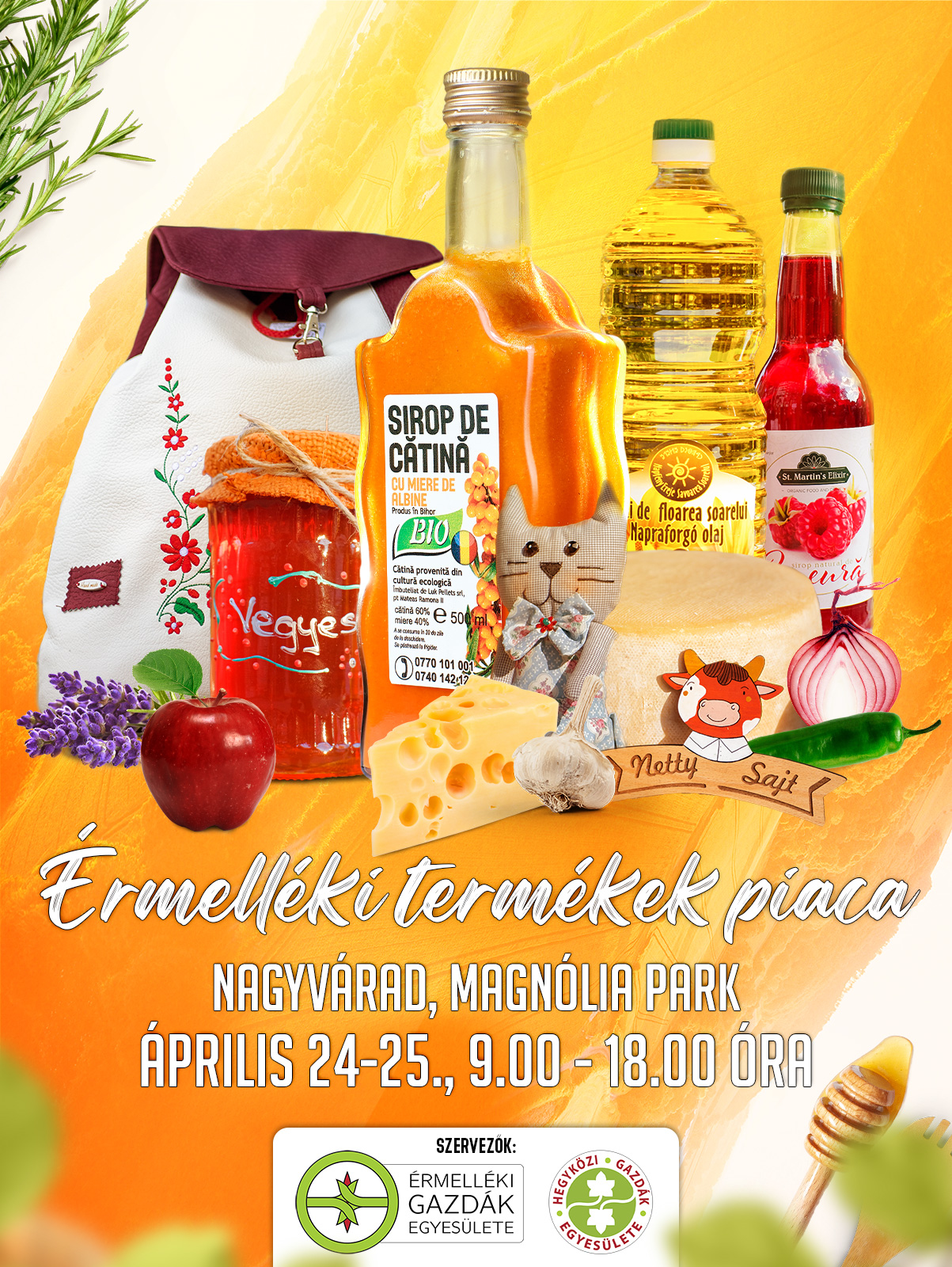 Április 24-én és 25-én az Érmelléki Gazdák Egyesülete (ÉGE) ismét megnyitja Nagyváradon az Érmellék Ízei és Termékei piacát, amelynek ezúttal is a házi termékek biztosítják hagyományos jellegét. A termékfelhozatalra a nagyváradi Magnólia parkban (Rogériusz negyed) kerül sor, szombaton és vasárnap 9?18.00 óra között.