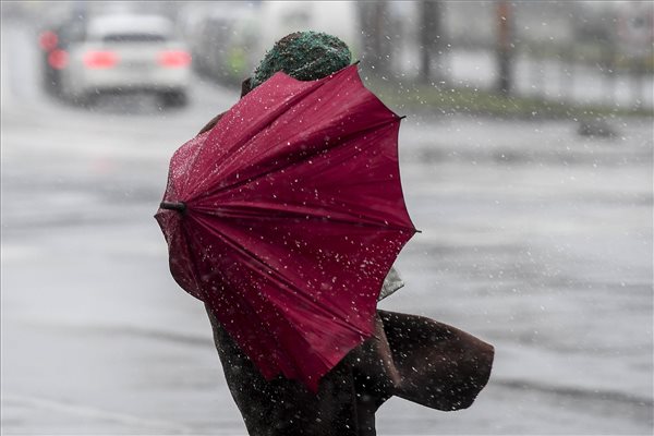 Erős szél és havas eső Debrecenben