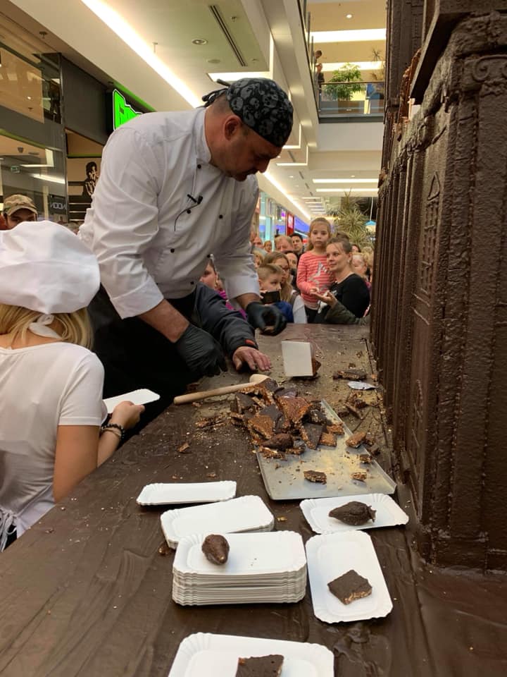 A Csokifesztivál legnagyobb meglepetéséből, a Debreceni Református Nagytemplom csokis grillázs makettjéből több mint ezren kértek és kaptak kóstolót.