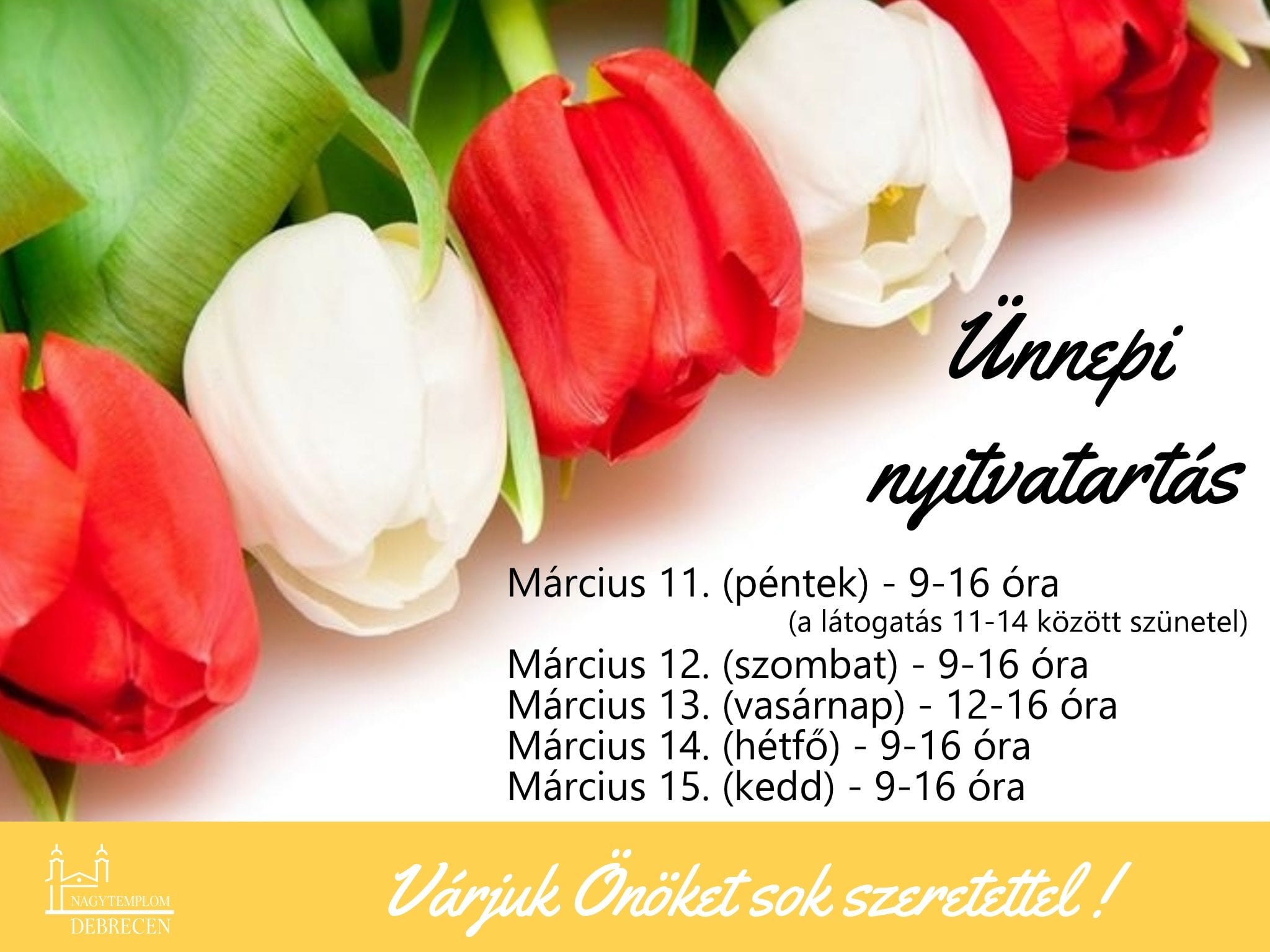 Az ünnepi hosszú hétvégén garantált idegenvezetésekkel, hosszított nyitvatartással és a nemzeti ünnephez kapcsolódó családi élménypedagógiai foglalkozásokkal várják a látogatókat a Debreceni Református Nagytemplomban.