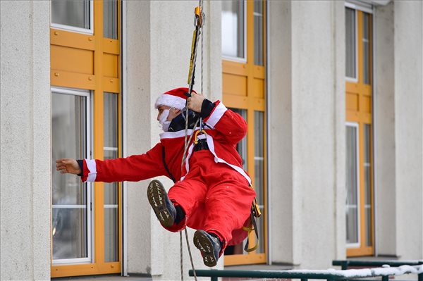 A klinika ablakain keresztül nem csak Grincs látogatta meg az ott gyógyuló gyerekeket, hanem a Mikulás (Csatári Gergő, berettyóújfalui tűzoltó) is.