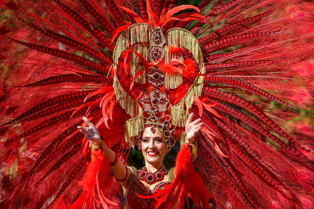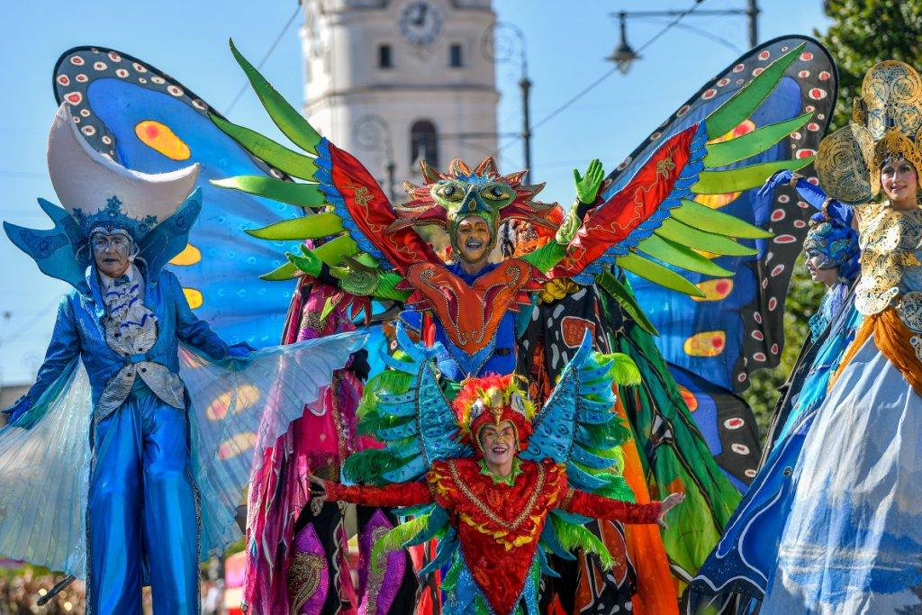 A karneváli menetben a 18 virágkocsi mellett 10 hazai és 17 külföldi művészeti csoportot láthatott a menet mintegy hat kilométeres útvonala mentén elhelyezkedő közönség.