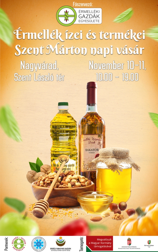 November 10. és 11-én az Érmelléki Gazdák Egyesülete ebben az évben is megszervezi a Szent Márton napi vásárt, amely naponta 10?19 óra között várja az eredeti ízek kedvelőit. Az érmelléki, a hegyközi és a szatmári portékák mellett idén kolozsvári és Hajdú-Bihar megyei termékekkel is találkozhatnak majd az érdeklődők.