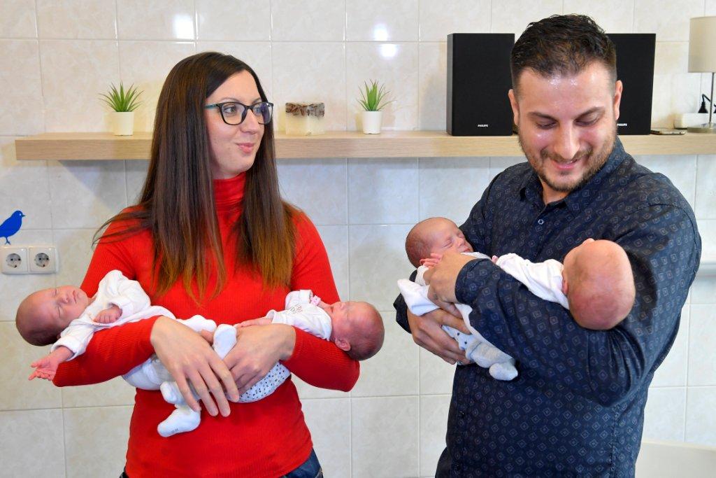 Nagyné Kozák Anita és férje, Nagy Richárd a négyes ikreikkel a Debreceni Egyetem Szülészeti és Nőgyógyászati Klinikáján november 29-én.[/caption]