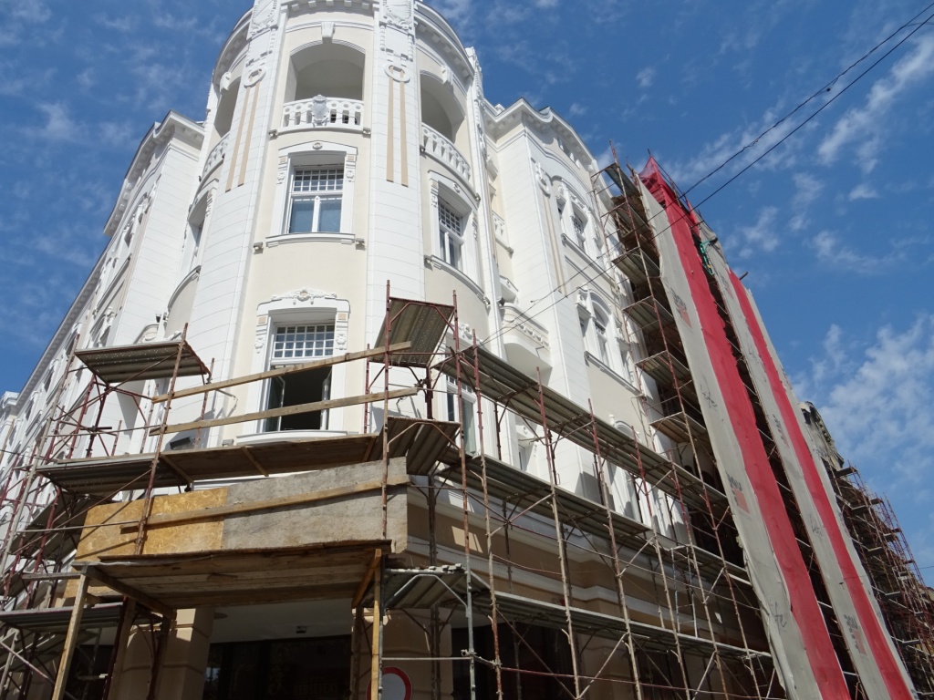 Az épület Mihai Eminescu utcai homlokzatán eddig többek között leverték a régi vakolatot; megtisztították és kipótolták a dekoratív elemeket; kijavították a párkányokat és homlokléceket; elkészült a külső kézi vakolás és a homlokzat külső festése a stukkókkal együtt; restaurálták, kipótolták a díszítő kovácsoltvas elemeket, a levált részeket pedig visszahegesztették; lefestették az erkélyek fémrészeit. A Republicii utca felőli homlokzaton leverték a régi vakolatot; 45 százalékban elkészült a dekoratív elemek pótlása és tisztítása, a homlokzat vakolásának 30 százaléka; megerősítették az erkélyt és a homlokzat festése is húsz százalékban elkészült.