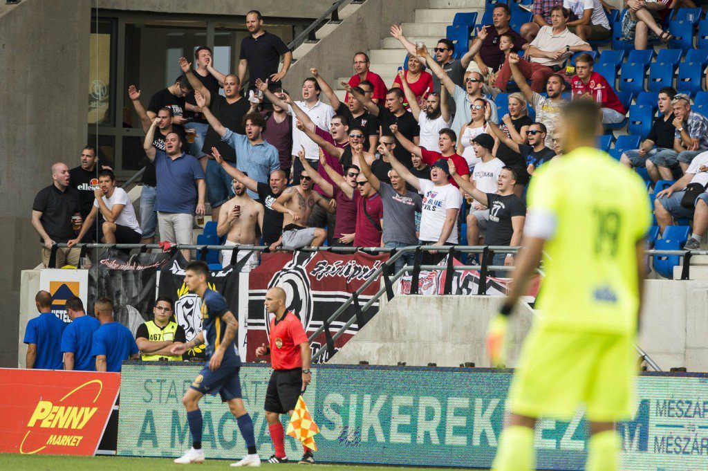 A debreceni szurkolók a felcsúti lelátón biztatják a Lokit. MTI Fotó: Bodnár Boglárka[/caption]