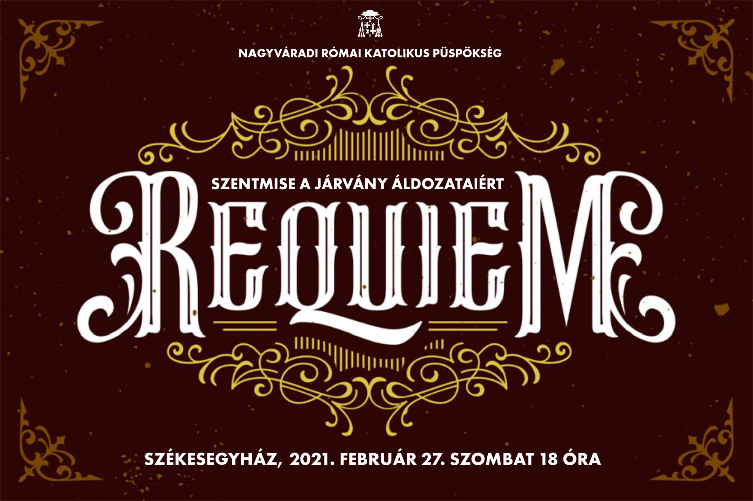 2021. február 27-én, szombaton 18 órakor a nagyváradi székesegyházban bemutatott szentmisében azokért szeretnénk imádkozni, akik a koronavírus-járvány áldozataivá váltak. Ebben a szentmisében együtt akarunk imádkozni azokkal a gyászoló családokkal, akiknek fájdalmát a járványügyi előírások is tetézték, hisz nem adhatták meg a végtisztességet elhunytjaiknak. Szeretettel várjuk a gyászoló hozzátartozókat és minden jóakaratú embert!