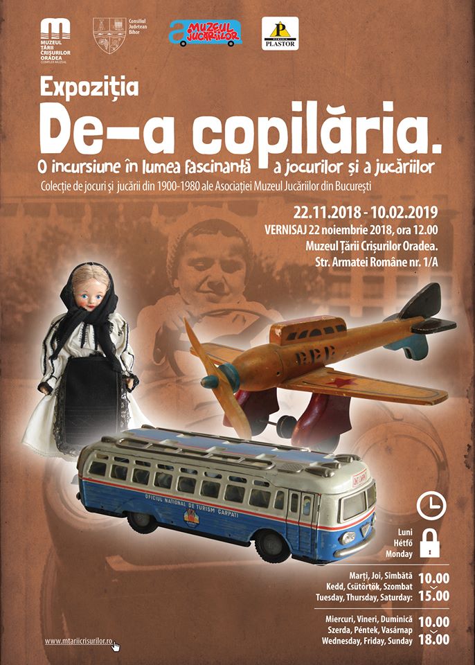 A Bihar Megyei Tanács, a Bukaresti Játékmúzeum Egyesület és az egykori Viitorul Műanyagipari Vállalat, mai nevén Plastor Rt., közös kiállításán több mint hatszáz játékon keresztül ismerhetjük meg az elmúlt generációk gyermekkorát.