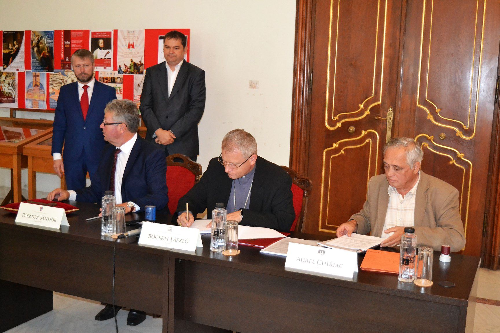Történelmi pillanat: 2018. szeptember 6-án, csütörtökön, 11.00 órakor a nagyváradi Püspöki Palota előcsarnokában aláírták a római katolikus püspöki palota átadási-átvételi protokollumát a három érintett intézmény képviselői: Pásztor Sándor Bihar Megyei Tanács elnöke, Aurel Chiriac Körösvidéki Múzeum igazgatója, illetve Böcskei László nagyváradi római katolikus megyés püspök. Jelen voltak Szabó Ödön és Cseke Attila parlamenti képviselők.